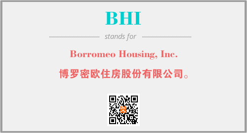 上述内容是“Borromeo Housing, Inc.”作为“BHI”的缩写,解释为“博罗密欧住房股份有限公司。”时的信息,以及英文缩略词BHI所代表的英文单词,其对应的中文拼音、详细解释以及在英文中的流行度和相关分类、应用领域及应用示例等。