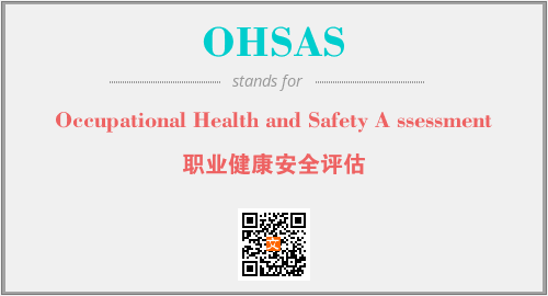 英文缩略词“OHSAS”经常作为“Occupational Health and Safety A ssessment”的英文缩写来使用,中文表示:“职业健康安全评估”。本文将详细介绍英文缩写词OHSAS所代表英文单词,其对应的中文拼音、详细解释以及在英语中的流行度。此外,还有关于缩略词OHSAS的分类、应用领域及相关应用示例等。