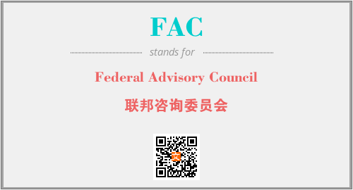 上述内容是“Federal Advisory Council”作为“FAC”的缩写,解释为“联邦咨询委员会”时的信息,以及英文缩略词FAC所代表的英文单词,其对应的中文拼音、详细解释以及在英文中的流行度和相关分类、应用领域及应用示例等。