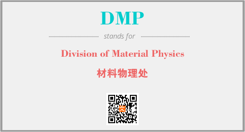 上述内容是“Division of Material Physics”作为“DMP”的缩写,解释为“材料物理处”时的信息,以及英文缩略词DMP所代表的英文单词,其对应的中文拼音、详细解释以及在英文中的流行度和相关分类、应用领域及应用示例等。