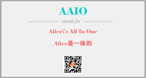 上述内容是“Alice\'s All In One”作为“AAIO”的缩写,解释为“Alice是一体的”时的信息,以及英文缩略词AAIO所代表的英文单词,其对应的中文拼音、详细解释以及在英文中的流行度和相关分类、应用领域及应用示例等。