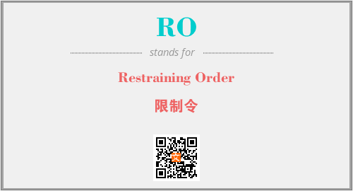 上述内容是“Restraining Order”作为“RO”的缩写,解释为“限制令”时的信息,以及英文缩略词RO所代表的英文单词,其对应的中文拼音、详细解释以及在英文中的流行度和相关分类、应用领域及应用示例等。