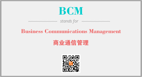 英文缩略词“BCM”经常作为“Business Communications Management”的英文缩写来使用,中文表示:“商业通信管理”。本文将详细介绍英文缩写词BCM所代表英文单词,其对应的中文拼音、详细解释以及在英语中的流行度。此外,还有关于缩略词BCM的分类、应用领域及相关应用示例等。