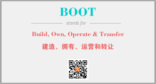 英文缩略词“BOOT”经常作为“Build, Own, Operate & Transfer”的英文缩写来使用,中文表示:“建造、拥有、运营和转让”。本文将详细介绍英文缩写词BOOT所代表英文单词,其对应的中文拼音、详细解释以及在英语中的流行度。此外,还有关于缩略词BOOT的分类、应用领域及相关应用示例等。