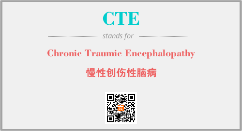 上述内容是“Chronic Traumic Encephalopathy”作为“CTE”的缩写,解释为“慢性创伤性脑病”时的信息,以及英文缩略词CTE所代表的英文单词,其对应的中文拼音、详细解释以及在英文中的流行度和相关分类、应用领域及应用示例等。