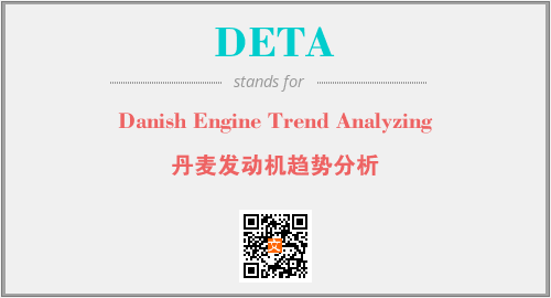 英文缩略词“DETA”经常作为“Danish Engine Trend Analyzing”的英文缩写来使用,中文表示:“丹麦发动机趋势分析”。本文将详细介绍英文缩写词DETA所代表英文单词,其对应的中文拼音、详细解释以及在英语中的流行度。此外,还有关于缩略词DETA的分类、应用领域及相关应用示例等。