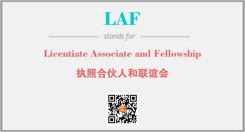 上述内容是“Licentiate Associate and Fellowship”作为“LAF”的缩写,解释为“执照合伙人和联谊会”时的信息,以及英文缩略词LAF所代表的英文单词,其对应的中文拼音、详细解释以及在英文中的流行度和相关分类、应用领域及应用示例等。