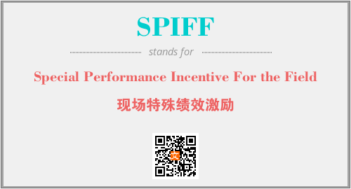 上述内容是“Special Performance Incentive For the Field”作为“SPIFF”的缩写,解释为“现场特殊绩效激励”时的信息,以及英文缩略词SPIFF所代表的英文单词,其对应的中文拼音、详细解释以及在英文中的流行度和相关分类、应用领域及应用示例等。