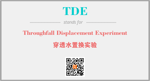上述内容是“Throughfall Displacement Experiment”作为“TDE”的缩写,解释为“穿透水置换实验”时的信息,以及英文缩略词TDE所代表的英文单词,其对应的中文拼音、详细解释以及在英文中的流行度和相关分类、应用领域及应用示例等。