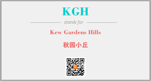 英文缩略词“KGH”经常作为“Kew Gardens Hills”的英文缩写来使用,中文表示:“秋园小丘”。本文将详细介绍英文缩写词KGH所代表英文单词,其对应的中文拼音、详细解释以及在英语中的流行度。此外,还有关于缩略词KGH的分类、应用领域及相关应用示例等。