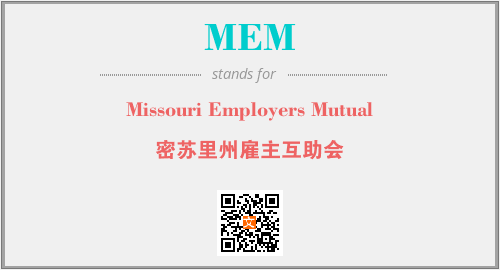 上述内容是“Missouri Employers Mutual”作为“MEM”的缩写,解释为“密苏里州雇主互助会”时的信息,以及英文缩略词MEM所代表的英文单词,其对应的中文拼音、详细解释以及在英文中的流行度和相关分类、应用领域及应用示例等。
