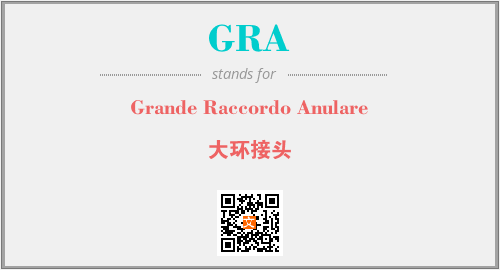 英文缩略词“GRA”经常作为“Grande Raccordo Anulare”的英文缩写来使用,中文表示:“大环接头”。本文将详细介绍英文缩写词GRA所代表英文单词,其对应的中文拼音、详细解释以及在英语中的流行度。此外,还有关于缩略词GRA的分类、应用领域及相关应用示例等。