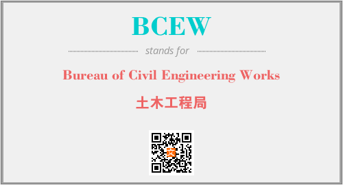 上述内容是“Bureau of Civil Engineering Works”作为“BCEW”的缩写,解释为“土木工程局”时的信息,以及英文缩略词BCEW所代表的英文单词,其对应的中文拼音、详细解释以及在英文中的流行度和相关分类、应用领域及应用示例等。