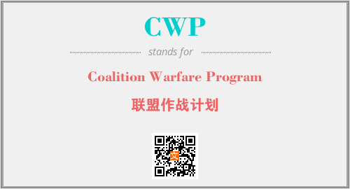英文缩略词“CWP”经常作为“Coalition Warfare Program”的英文缩写来使用,中文表示:“联盟作战计划”。本文将详细介绍英文缩写词CWP所代表英文单词,其对应的中文拼音、详细解释以及在英语中的流行度。此外,还有关于缩略词CWP的分类、应用领域及相关应用示例等。