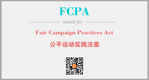 英文缩略词“FCPA”经常作为“Fair Campaign Practices Act”的英文缩写来使用,中文表示:“公平运动实践法案”。本文将详细介绍英文缩写词FCPA所代表英文单词,其对应的中文拼音、详细解释以及在英语中的流行度。此外,还有关于缩略词FCPA的分类、应用领域及相关应用示例等。