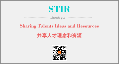 以上为Sharing Talents Ideas and Resources英文缩略词STIR的中文解释,以及该英文缩写在英语的流行度、分类和应用领域方面的信息。