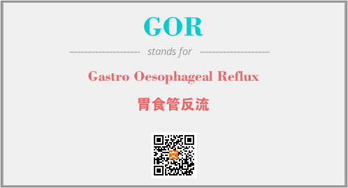 上述内容是“Gastro Oesophageal Reflux”作为“GOR”的缩写,解释为“胃食管反流”时的信息,以及英文缩略词GOR所代表的英文单词,其对应的中文拼音、详细解释以及在英文中的流行度和相关分类、应用领域及应用示例等。