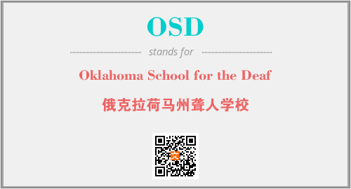英文缩略词“OSD”经常作为“Oklahoma School for the Deaf”的英文缩写来使用,中文表示:“俄克拉荷马州聋人学校”。本文将详细介绍英文缩写词OSD所代表英文单词,其对应的中文拼音、详细解释以及在英语中的流行度。此外,还有关于缩略词OSD的分类、应用领域及相关应用示例等。