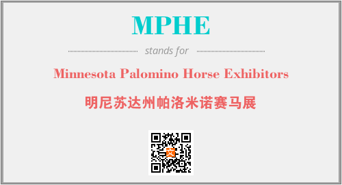 上述内容是“Minnesota Palomino Horse Exhibitors”作为“MPHE”的缩写,解释为“明尼苏达州帕洛米诺赛马展”时的信息,以及英文缩略词MPHE所代表的英文单词,其对应的中文拼音、详细解释以及在英文中的流行度和相关分类、应用领域及应用示例等。