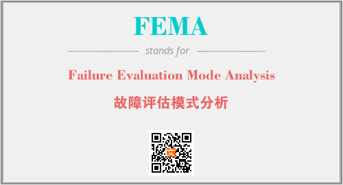 上述内容是“Failure Evaluation Mode Analysis”作为“FEMA”的缩写,解释为“故障评估模式分析”时的信息,以及英文缩略词FEMA所代表的英文单词,其对应的中文拼音、详细解释以及在英文中的流行度和相关分类、应用领域及应用示例等。