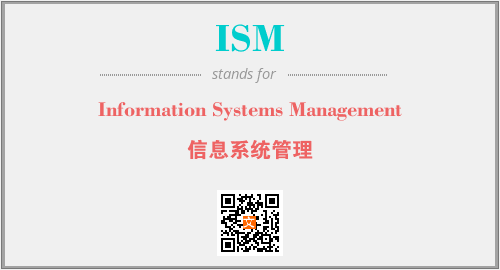 英文缩略词“ISM”经常作为“Information Systems Management”的英文缩写来使用,中文表示:“信息系统管理”。本文将详细介绍英文缩写词ISM所代表英文单词,其对应的中文拼音、详细解释以及在英语中的流行度。此外,还有关于缩略词ISM的分类、应用领域及相关应用示例等。
