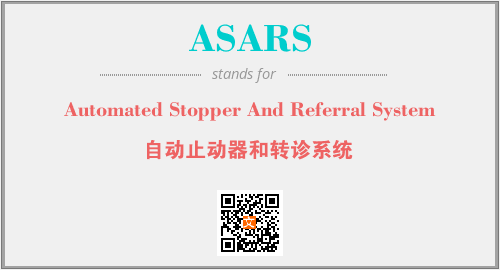 以上为Automated Stopper And Referral System英文缩略词ASARS的中文解释,以及该英文缩写在英语的流行度、分类和应用领域方面的信息。