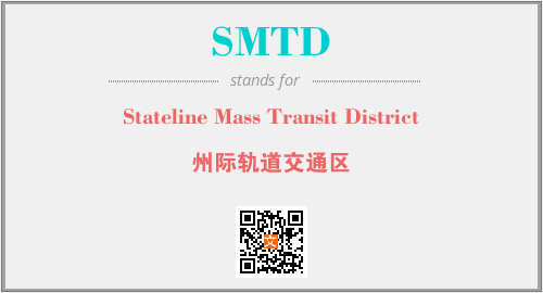 上述内容是“Stateline Mass Transit District”作为“SMTD”的缩写,解释为“州际轨道交通区”时的信息,以及英文缩略词SMTD所代表的英文单词,其对应的中文拼音、详细解释以及在英文中的流行度和相关分类、应用领域及应用示例等。