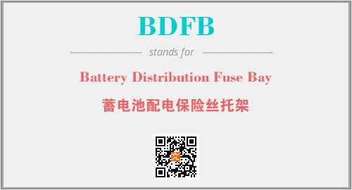英文缩略词“BDFB”经常作为“Battery Distribution Fuse Bay”的英文缩写来使用,中文表示:“蓄电池配电保险丝托架”。本文将详细介绍英文缩写词BDFB所代表英文单词,其对应的中文拼音、详细解释以及在英语中的流行度。此外,还有关于缩略词BDFB的分类、应用领域及相关应用示例等。
