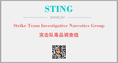上述内容是“Strike Team Investigative Narcotics Group”作为“STING”的缩写,解释为“突击队毒品调查组”时的信息,以及英文缩略词STING所代表的英文单词,其对应的中文拼音、详细解释以及在英文中的流行度和相关分类、应用领域及应用示例等。