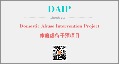 上述内容是“Domestic Abuse Intervention Project”作为“DAIP”的缩写,解释为“家庭虐待干预项目”时的信息,以及英文缩略词DAIP所代表的英文单词,其对应的中文拼音、详细解释以及在英文中的流行度和相关分类、应用领域及应用示例等。