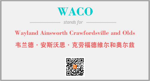 上述内容是“Wayland Ainsworth Crawfordsville and Olds”作为“WACO”的缩写,解释为“韦兰德·安斯沃思·克劳福德维尔和奥尔兹”时的信息,以及英文缩略词WACO所代表的英文单词,其对应的中文拼音、详细解释以及在英文中的流行度和相关分类、应用领域及应用示例等。