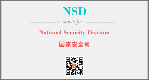 英文缩略词“NSD”经常作为“National Security Division”的英文缩写来使用,中文表示:“国家安全司”。本文将详细介绍英文缩写词NSD所代表英文单词,其对应的中文拼音、详细解释以及在英语中的流行度。此外,还有关于缩略词NSD的分类、应用领域及相关应用示例等。