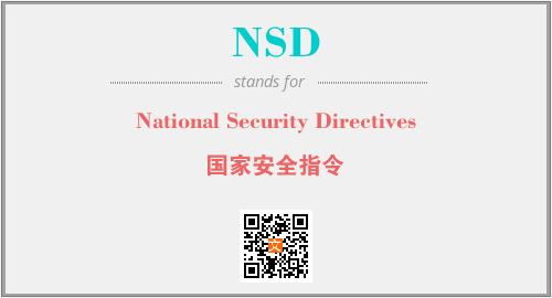 上述内容是“National Security Directives”作为“NSD”的缩写,解释为“国家安全指令”时的信息,以及英文缩略词NSD所代表的英文单词,其对应的中文拼音、详细解释以及在英文中的流行度和相关分类、应用领域及应用示例等。