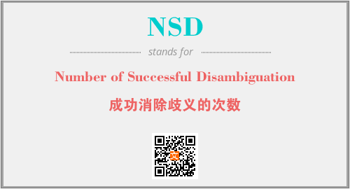上述内容是“Number of Successful Disambiguation”作为“NSD”的缩写,解释为“成功消除歧义的次数”时的信息,以及英文缩略词NSD所代表的英文单词,其对应的中文拼音、详细解释以及在英文中的流行度和相关分类、应用领域及应用示例等。