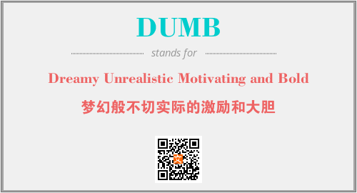 以上为Dreamy Unrealistic Motivating and Bold英文缩略词DUMB的中文解释,以及该英文缩写在英语的流行度、分类和应用领域方面的信息。