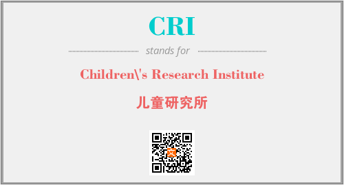 以上为Children\'s Research Institute英文缩略词CRI的中文解释,以及该英文缩写在英语的流行度、分类和应用领域方面的信息。