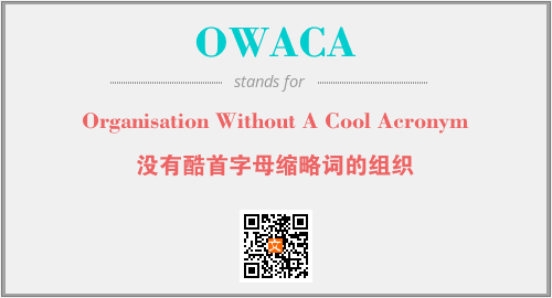 上述内容是“Organisation Without A Cool Acronym”作为“OWACA”的缩写,解释为“没有酷首字母缩略词的组织”时的信息,以及英文缩略词OWACA所代表的英文单词,其对应的中文拼音、详细解释以及在英文中的流行度和相关分类、应用领域及应用示例等。
