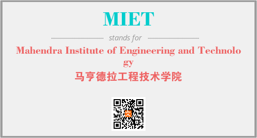以上为Mahendra Institute of Engineering and Technology英文缩略词MIET的中文解释,以及该英文缩写在英语的流行度、分类和应用领域方面的信息。