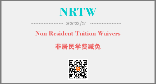 英文缩略词“NRTW”经常作为“Non Resident Tuition Waivers”的英文缩写来使用,中文表示:“非居民学费减免”。本文将详细介绍英文缩写词NRTW所代表英文单词,其对应的中文拼音、详细解释以及在英语中的流行度。此外,还有关于缩略词NRTW的分类、应用领域及相关应用示例等。