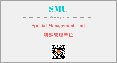 英文缩略词“SMU”经常作为“Special Management Unit”的英文缩写来使用,中文表示:“特殊管理单位”。本文将详细介绍英文缩写词SMU所代表英文单词,其对应的中文拼音、详细解释以及在英语中的流行度。此外,还有关于缩略词SMU的分类、应用领域及相关应用示例等。