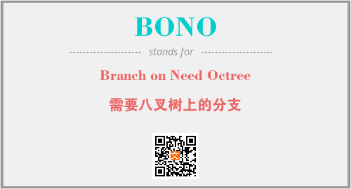 上述内容是“Branch on Need Octree”作为“BONO”的缩写,解释为“需要八叉树上的分支”时的信息,以及英文缩略词BONO所代表的英文单词,其对应的中文拼音、详细解释以及在英文中的流行度和相关分类、应用领域及应用示例等。