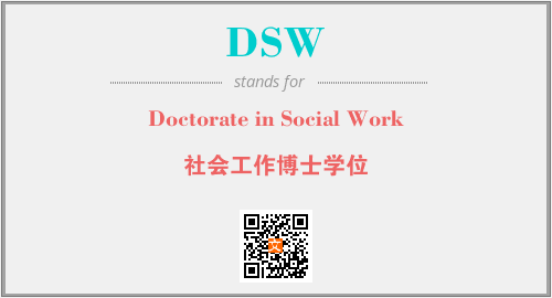 上述内容是“Doctorate in Social Work”作为“DSW”的缩写,解释为“社会工作博士学位”时的信息,以及英文缩略词DSW所代表的英文单词,其对应的中文拼音、详细解释以及在英文中的流行度和相关分类、应用领域及应用示例等。