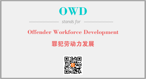 上述内容是“Offender Workforce Development”作为“OWD”的缩写,解释为“罪犯劳动力发展”时的信息,以及英文缩略词OWD所代表的英文单词,其对应的中文拼音、详细解释以及在英文中的流行度和相关分类、应用领域及应用示例等。