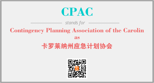 上述内容是“Contingency Planning Association of the Carolinas”作为“CPAC”的缩写,解释为“卡罗莱纳州应急计划协会”时的信息,以及英文缩略词CPAC所代表的英文单词,其对应的中文拼音、详细解释以及在英文中的流行度和相关分类、应用领域及应用示例等。
