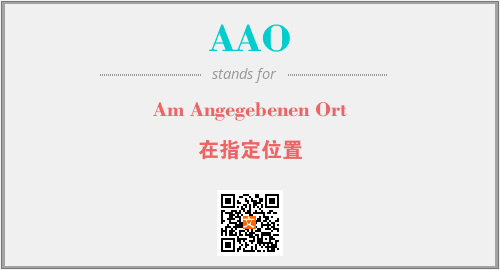 上述内容是“Am Angegebenen Ort”作为“AAO”的缩写,解释为“在指定位置”时的信息,以及英文缩略词AAO所代表的英文单词,其对应的中文拼音、详细解释以及在英文中的流行度和相关分类、应用领域及应用示例等。