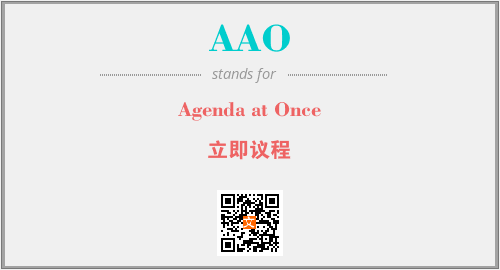 英文缩略词“AAO”经常作为“Agenda at Once”的英文缩写来使用,中文表示:“立即议程”。本文将详细介绍英文缩写词AAO所代表英文单词,其对应的中文拼音、详细解释以及在英语中的流行度。此外,还有关于缩略词AAO的分类、应用领域及相关应用示例等。