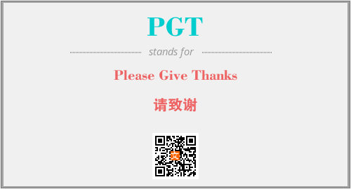 以上为Please Give Thanks英文缩略词PGT的中文解释,以及该英文缩写在英语的流行度、分类和应用领域方面的信息。