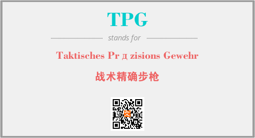 以上为Taktisches Prдzisions Gewehr英文缩略词TPG的中文解释,以及该英文缩写在英语的流行度、分类和应用领域方面的信息。