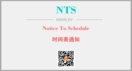 上述内容是“Notice To Schedule”作为“NTS”的缩写,解释为“时间表通知”时的信息,以及英文缩略词NTS所代表的英文单词,其对应的中文拼音、详细解释以及在英文中的流行度和相关分类、应用领域及应用示例等。