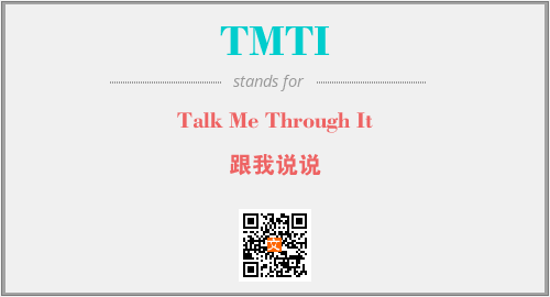 以上为Talk Me Through It英文缩略词TMTI的中文解释,以及该英文缩写在英语的流行度、分类和应用领域方面的信息。